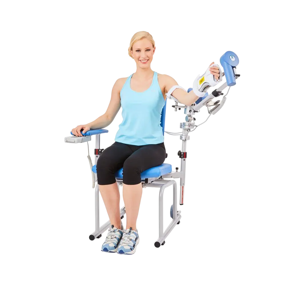 Die ARTROMOT®-A/E2 wurde entwickelt, um eine schonende und effiziente Bewegungsunterstützung des Ellenbogengelenks zu gewährleisten. Dank ihrer einfachen Bedienbarkeit und individuell einstellbaren Parameter ermöglicht sie eine maßgeschneiderte Therapie, die sowohl den Anforderungen im Klinikalltag als auch der Nutzung zu Hause gerecht wird.
