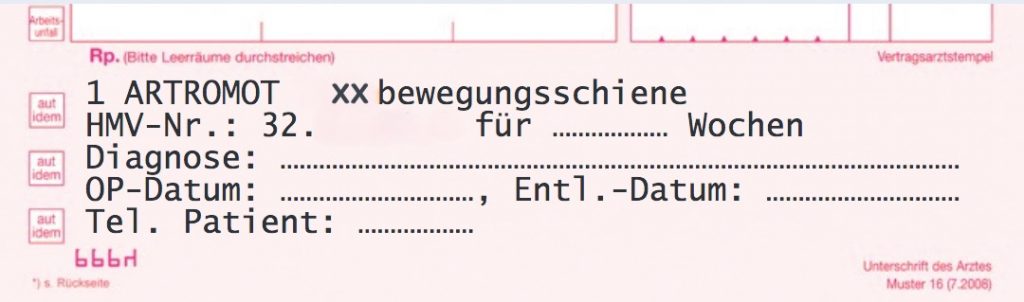 Wir prüfen Ihre Anfrage und melden uns schnellstmöglich mit einer Bestätigung. Sobald alles erledigt ist, können Sie die CPM-Schiene weiterhin nutzen – ganz ohne Unterbrechung Ihrer Therapie.